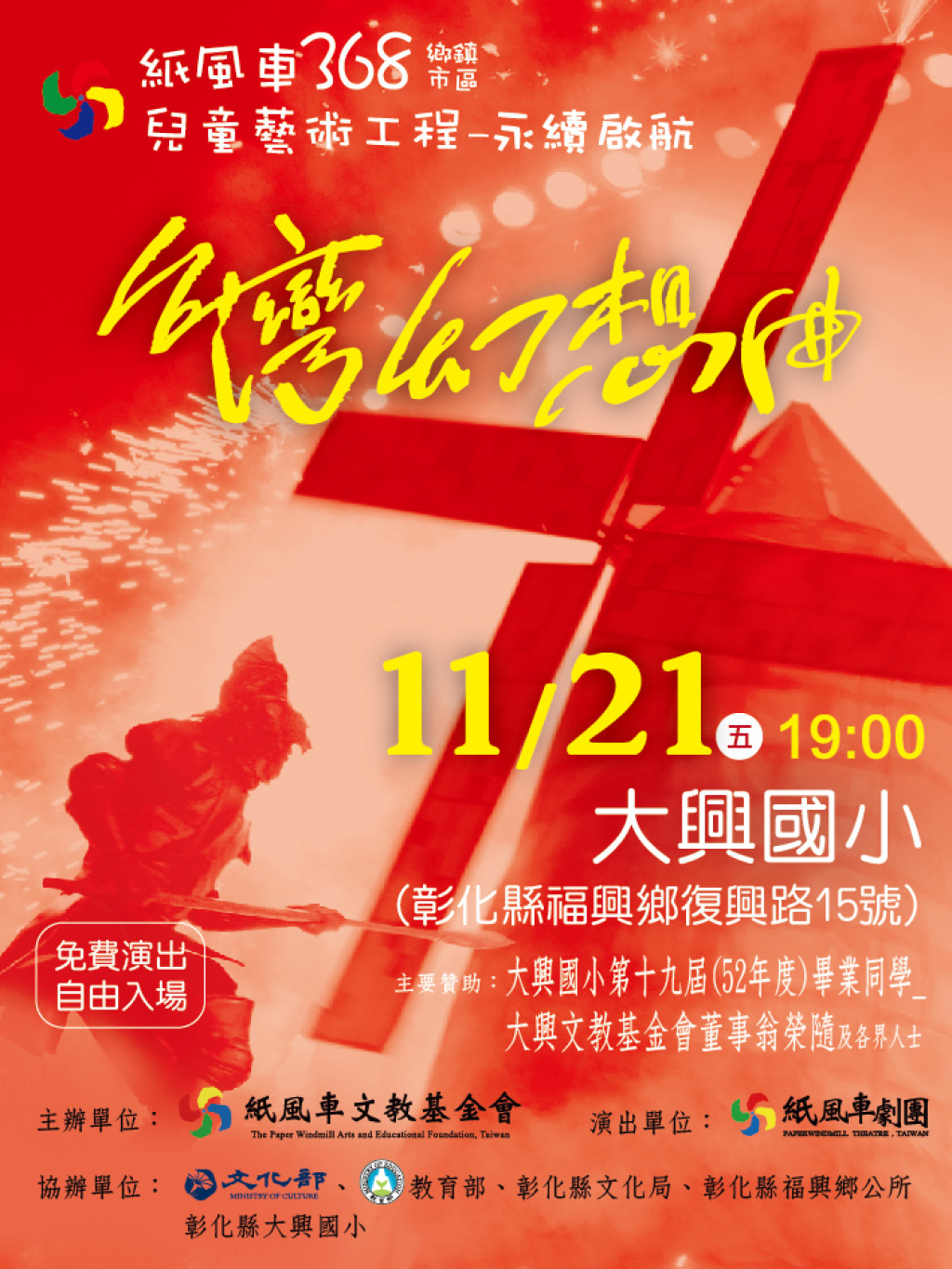 | (四) | 演出地點:彰化縣大興國小操場(彰化縣福興鄉外埔村復興路15號)。 |
